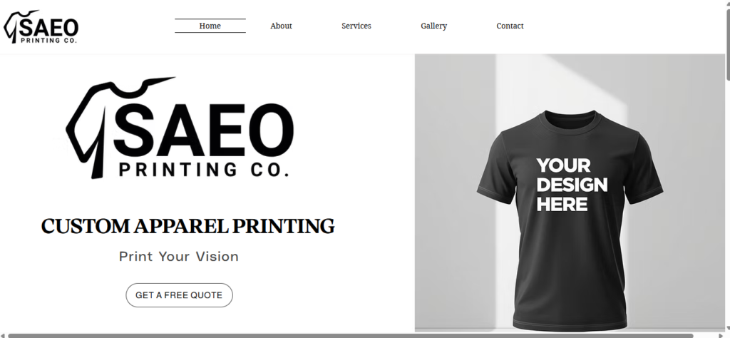 This is a website I created for SAEO Printing using Wix in March 2026.